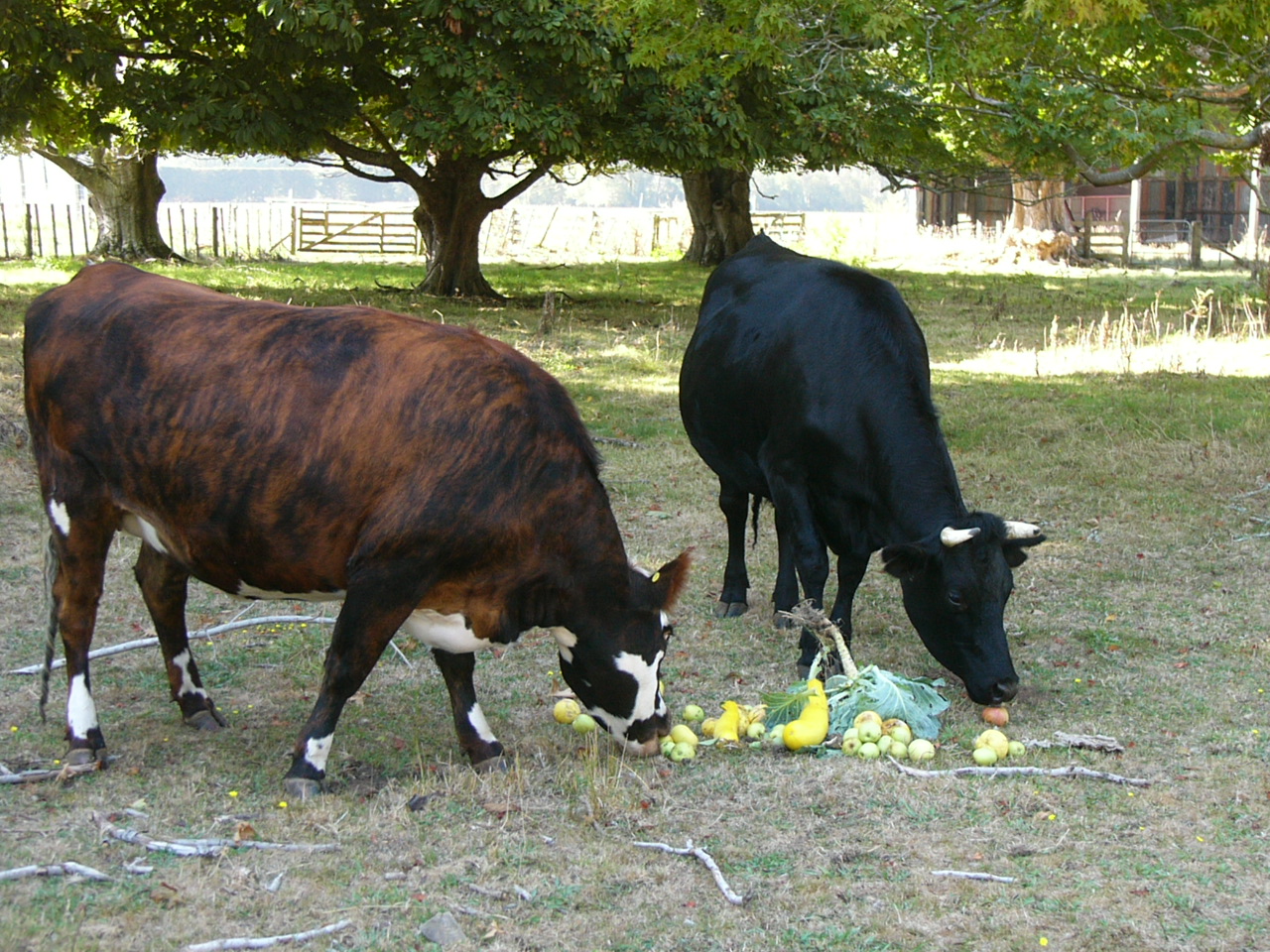 In the last two months we have had about half a day of light rain that barely wet the ground before it evaporated. Pretty much the entire North Island of New Zealand is now officially in drought. The only places we have any green grass is where there is shade from trees – fortunately I have a few big trees on the property. Everywhere else the grass is being burnt away. Got quite a lot of bare patches in some paddocks already. We are feeding the cows the apples, grapefruit and veges we would normally reserve for preserving and eating.