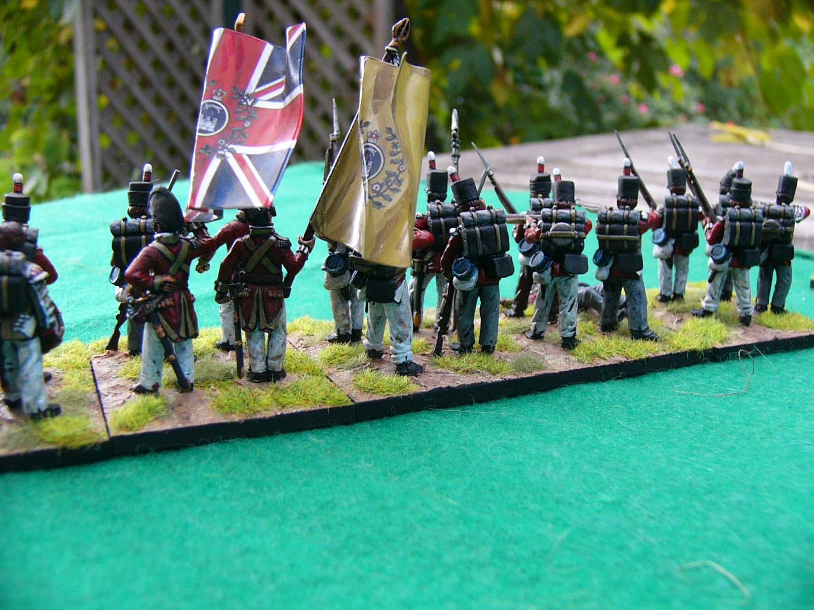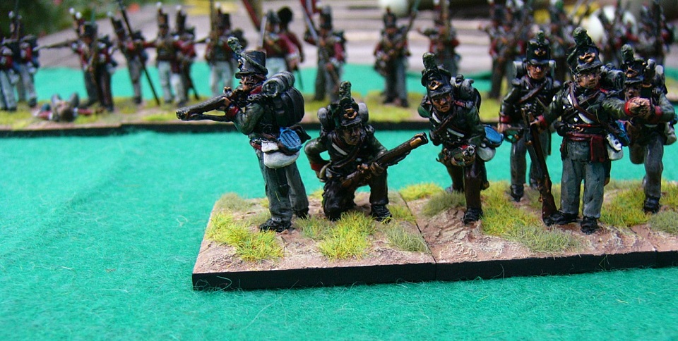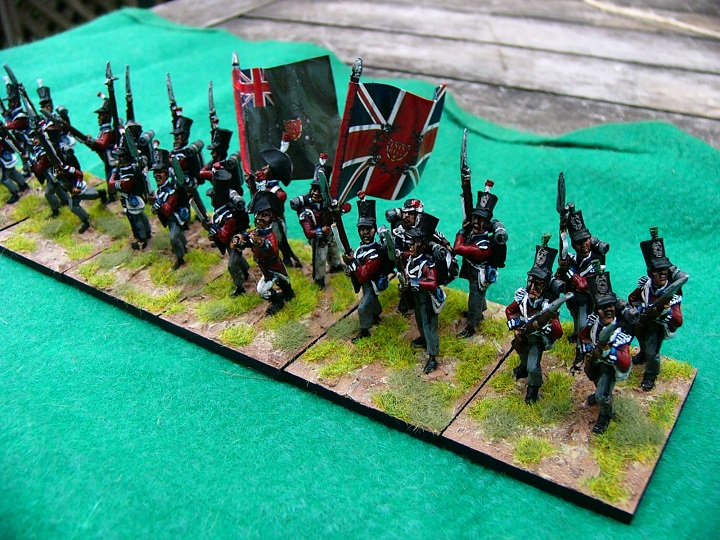 When I did the Old Glory battalion I used a base for each Flank Company. That was too many, so for the Perry battalion I used a couple of figures at each end to represent the Grenadiers and Lights.