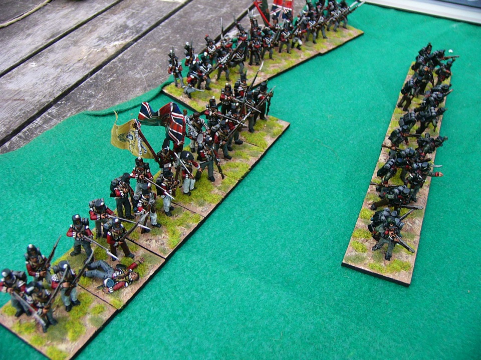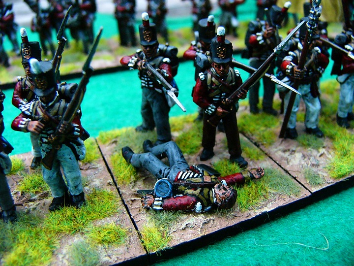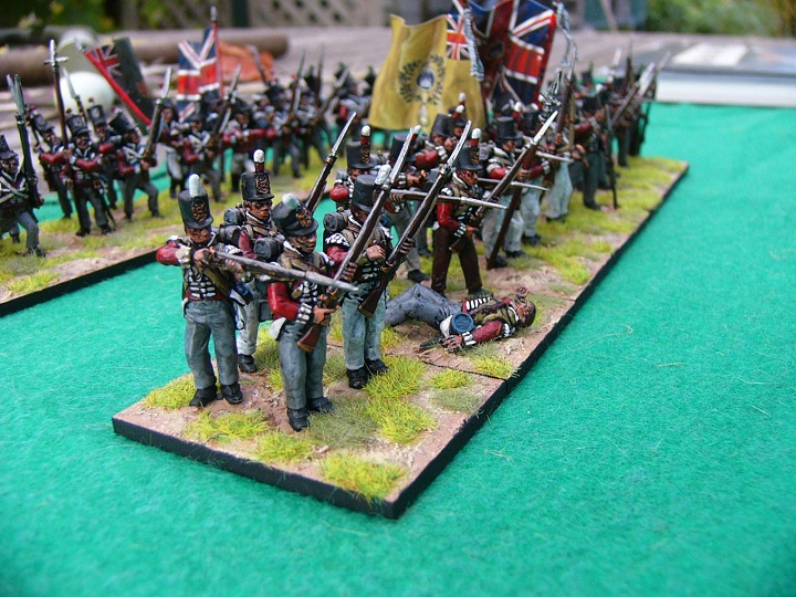 I used the British casualty figure from the Perry Cuirassier/Carabiner set to tart up the firing line.