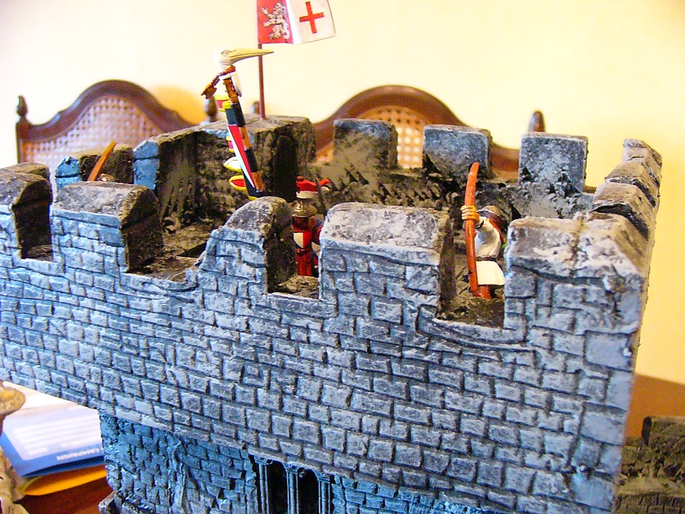 Years ago when my boy was at primary school they were doing a module on castles. They had to build a castle, so we worked on this project together. The wobbly lines of masonry I blame on my ten year old son. Pictures of this castle have previously appeared on the Round Table of Bretonnia forum.