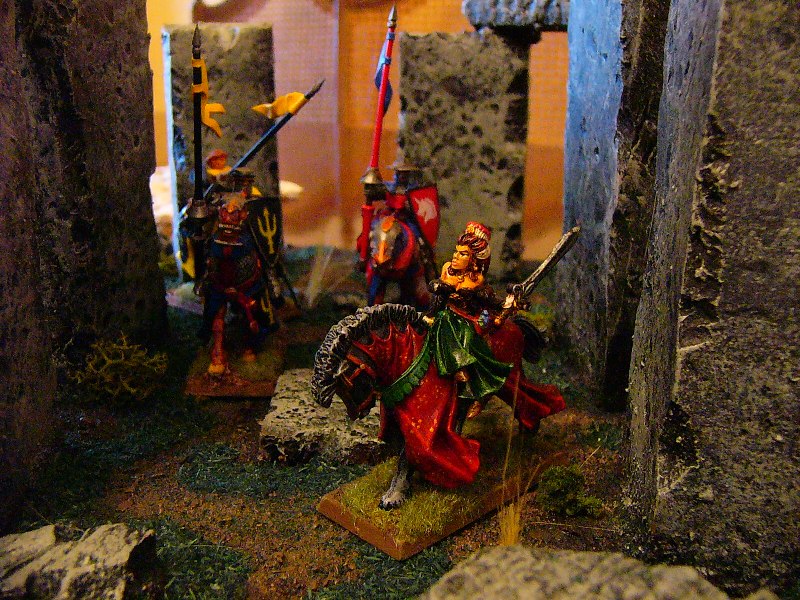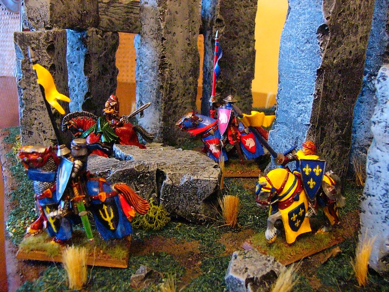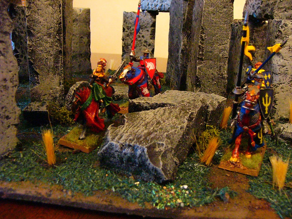 Bretonnian Knights Errant riding through the shrine to the Old Gods.
