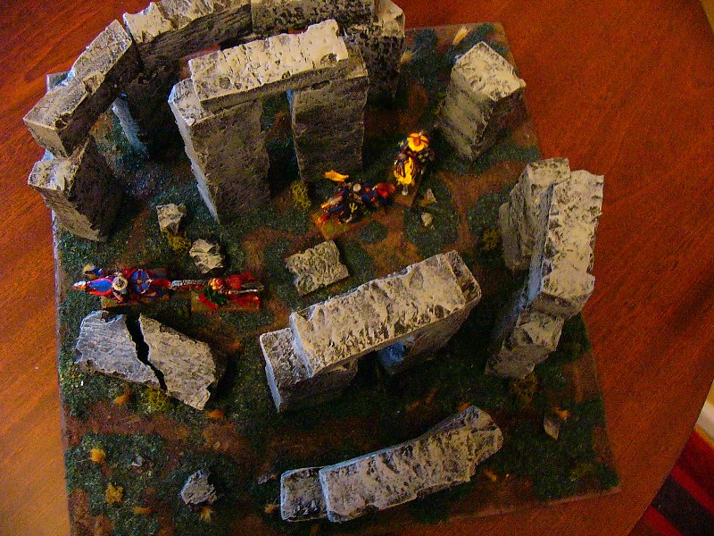 This terrain piece was another joint effort between one of my children and I for a school project. At the time my daughter was about eight and was doing a module on Stonehenge. She wanted me to help her make a model that she could show off at school. They had just visited New Zealand’s own Stonehenge to see a replica henge and she was all inspired. I think the chances of her and I cooperating on any projects like this now are pretty slim so this model is rather special to me.