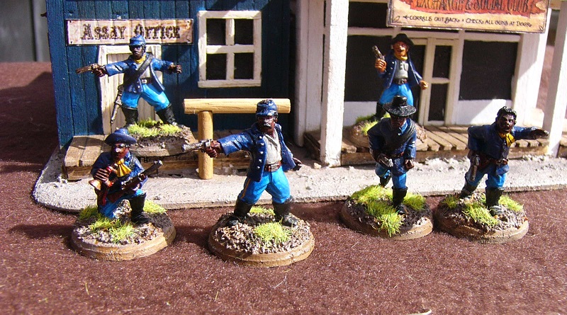 This time some Buffalo Soldiers. I have been slowly building up a force of soldiers and Plains Indians to oppose them. The first of these was this group of Buffalo Soldiers and their white captain.