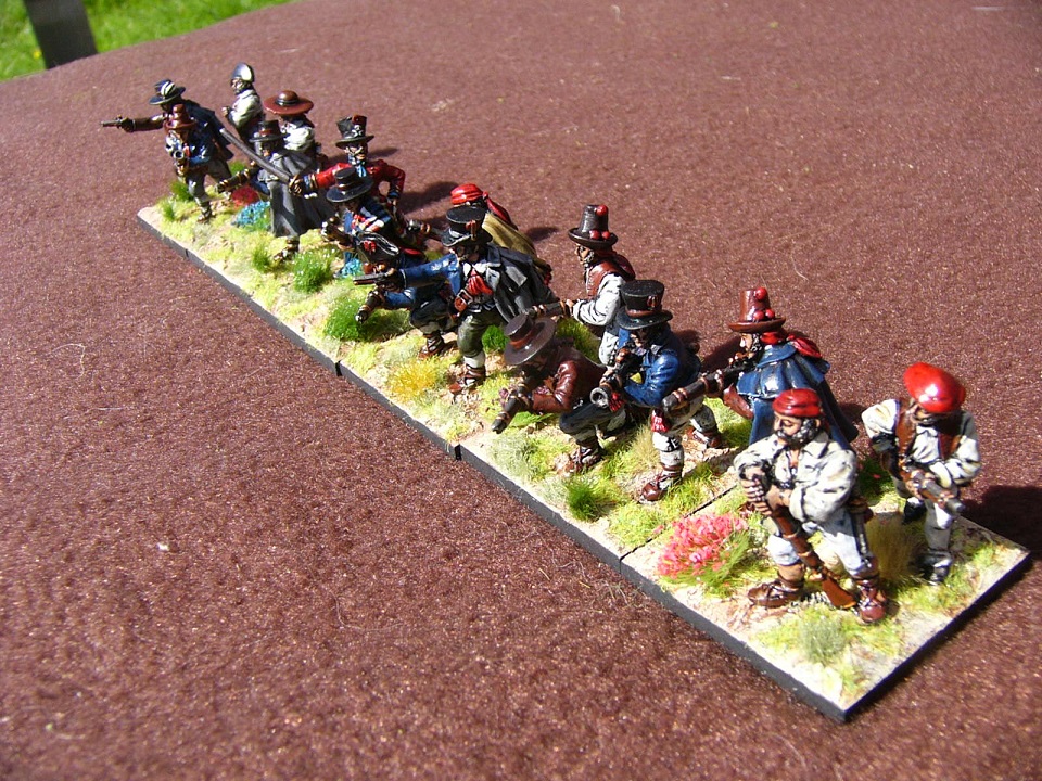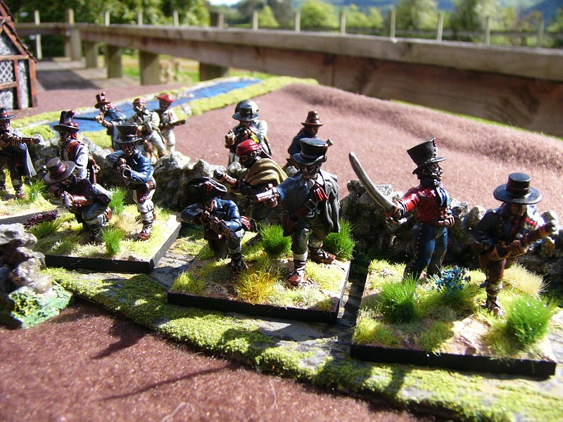 They are mounted two to three to a base, to reflect their irregular and skirmish deployment. I am in the process of painting a couple of character figures who will be based separately for Sharpe Practice games.