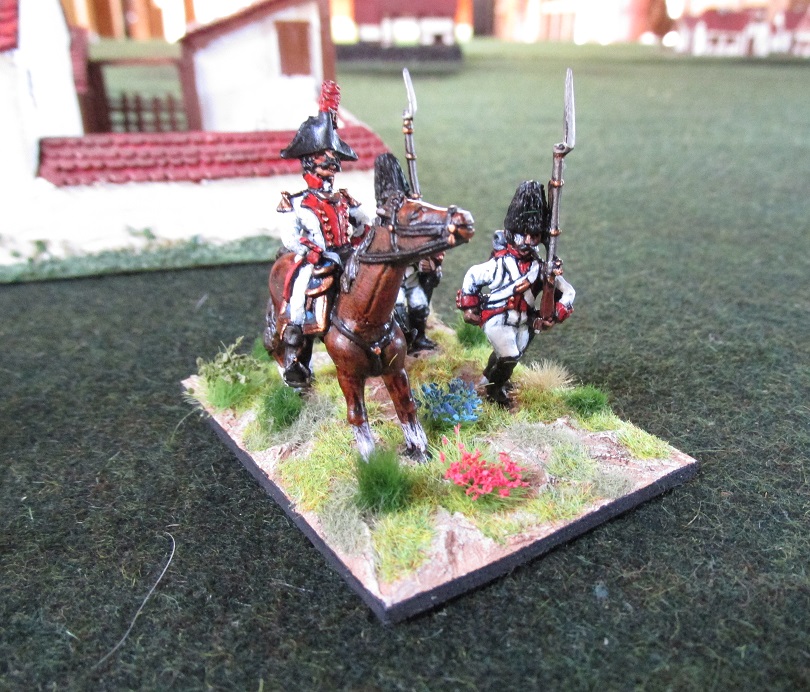 A Spanish Colonel rides past two of his Grenadiers.  The chap in front is a Connoisseur Miniatures figure (from Bicorne Miniatures). I like him a lot. All he needs is a cigar.