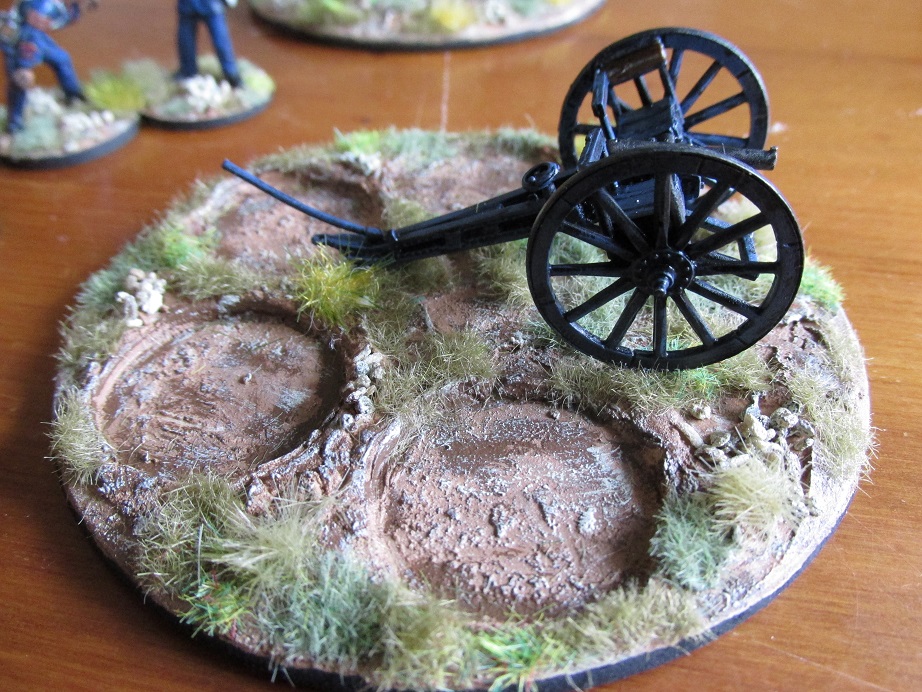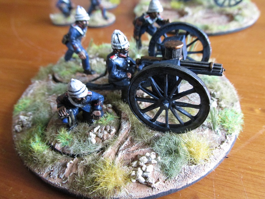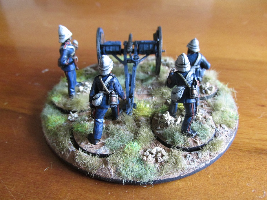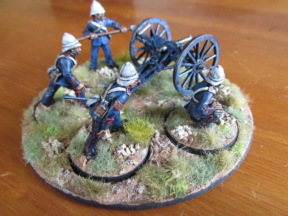 I got 40 British Infantry, 30 Boers, 30 Natal Native Infantry, 9 British Lancers and these two artillery pieces with crews. There were also 120 Zulus. All metal and less than NZ0.80c a figure (not counting the guns and horses). All the British/Allies were already based onto 25mm MDF rounds. I decided to leave them like this and use sabot bases for them.