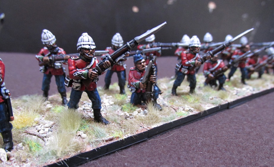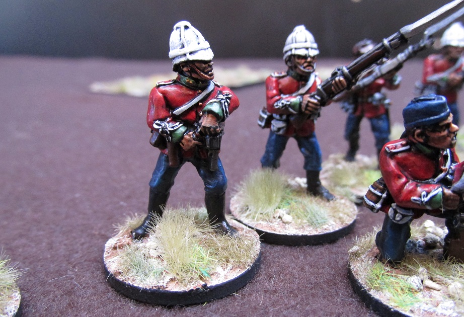 These miniatures are all Black Tree Designs. First off, Captain Reginald Younghusband, commander of C Company 1/24th Foot. Apparently he and the remnants of his company held out on the side of Isandlhwana mountain until they ran out of ammunition and then charged the encircling Zulu with fixed bayonets after a final handshake. I am not sure if that is a Zulu oral story or something made up by Victorian romantics. Either way, it would have made a great ‘extra scene’ in a director’s cut of Zulu Dawn.