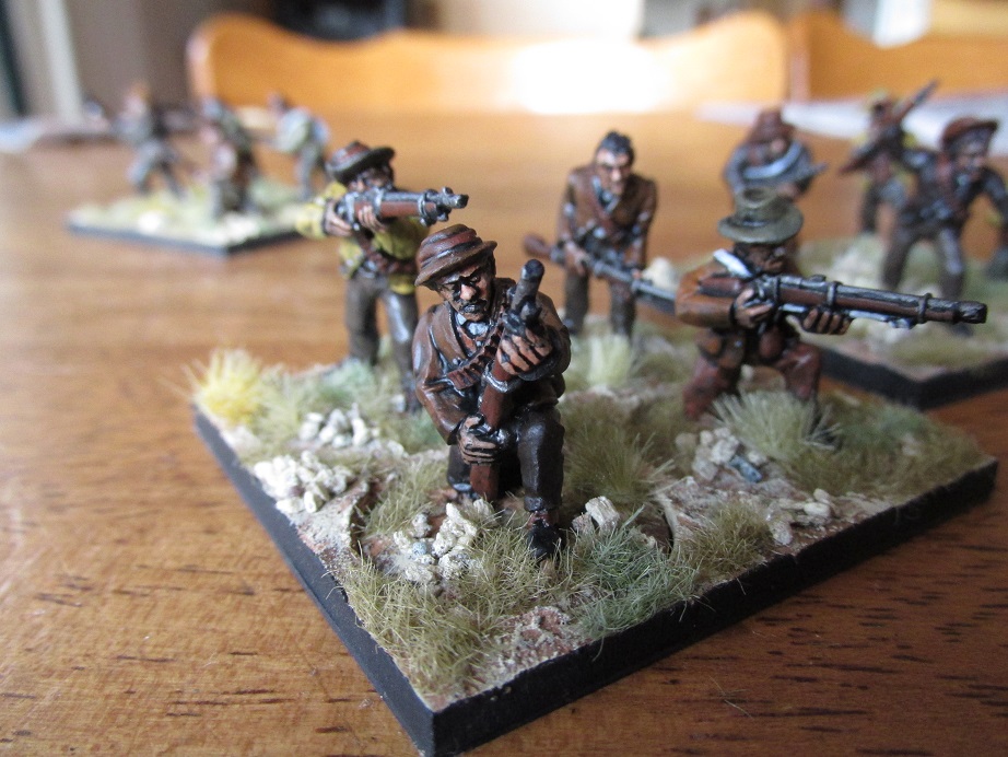 Real life has been getting in the way of painting and posting. Got these finished a week or so back. Black Tree Design Boers. Like all the Zulu Wars figures I have painted so far these chaps are based individually and I have also made sabot bases for them. They will do service as foes for my British if I game the First Boer War as well.