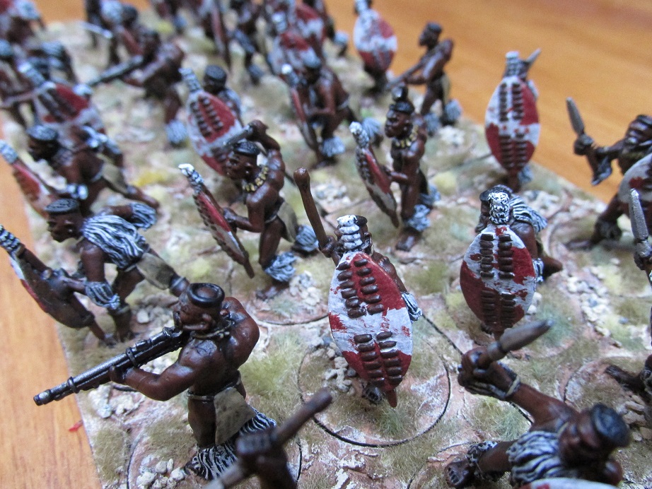 Last week between Tuesday and Friday I finished off another 36 figure Zulu regiment. I think I spent about ten hours in total over the four days on this unit, including the basing.
