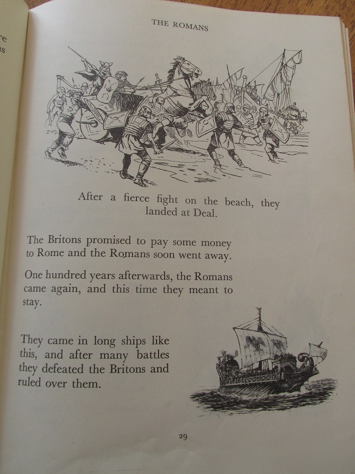 When I was a kid one of my older brothers had these four little books that were my first introduction history. They had, for the sixties when I was reading them, the coolest line drawing illustrations and colour plates. These books covered English history from the time of ‘cavemen’ until the ‘present day’. The present day was the early fifties.