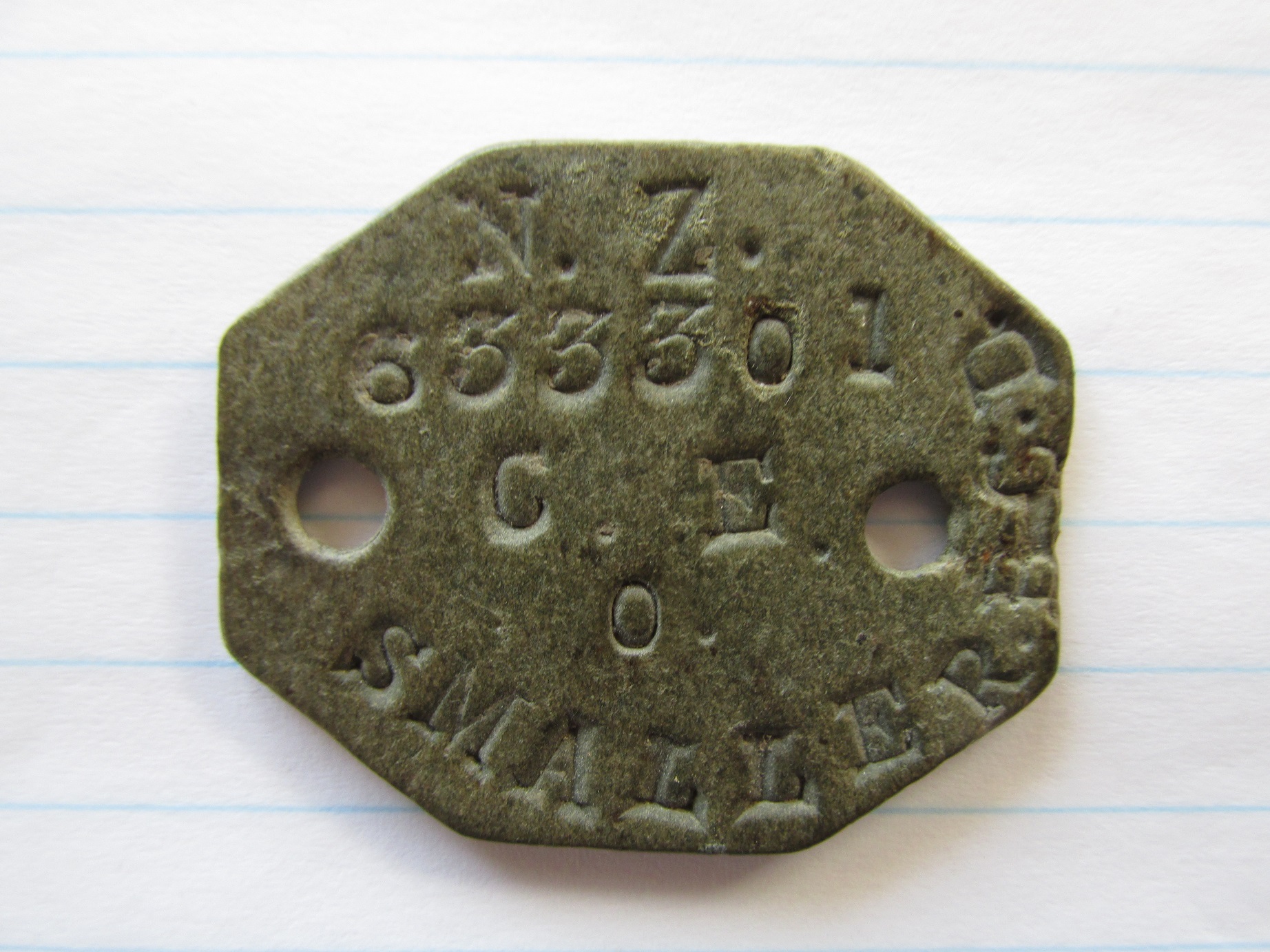 It has his nationality (N.Z), service number (633301), religion (C.E = Church of England), Blood group (O) and of course his Surname and initials (SMALLER, B.C.D).