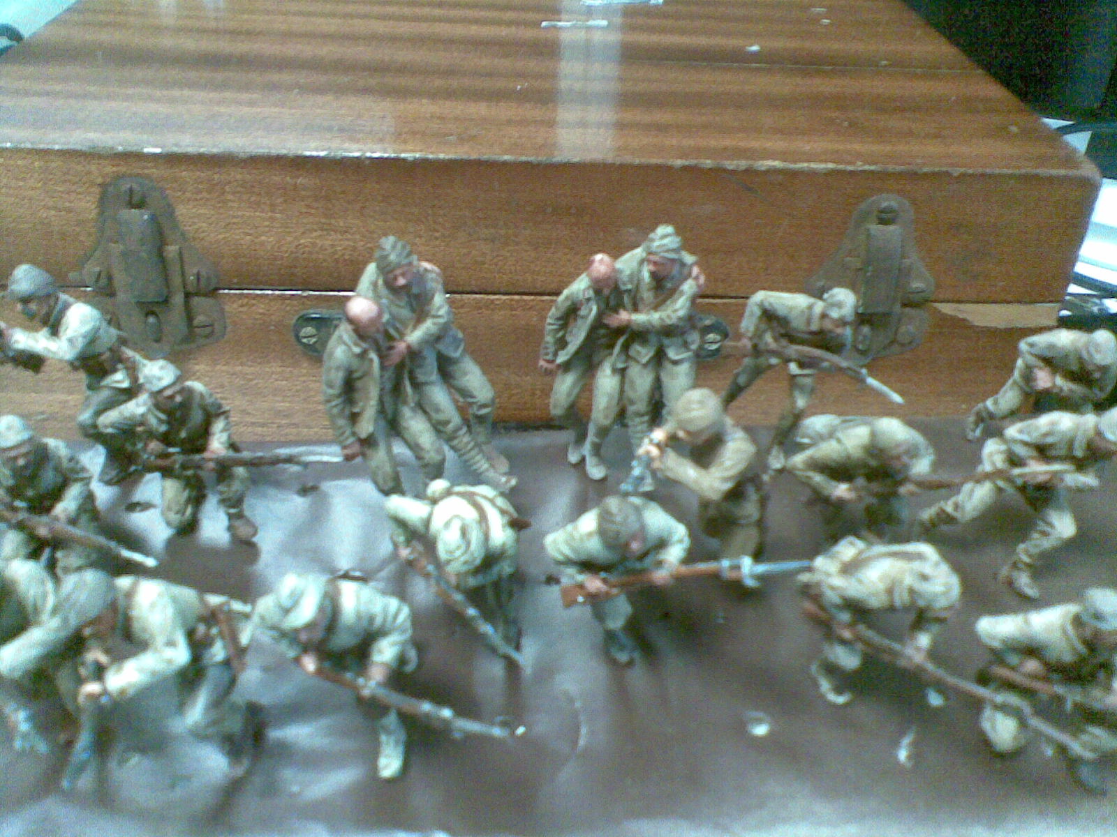 More Turks. A variety of poses from the charging/attacking to wounded and falling wounded. These mostly need dry brushing, lightening and a few more colours on places such as sashes and some more definition on rifles.