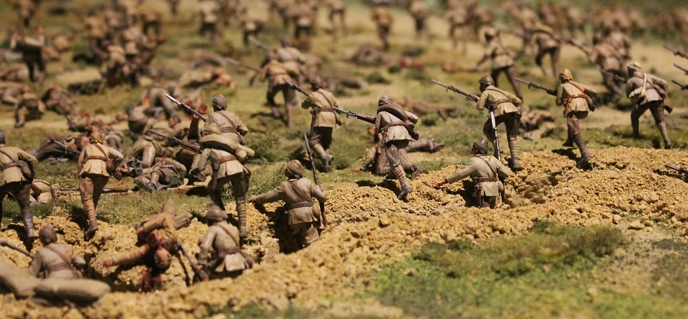 I particularly like this vignette. I have to say that. Two of the officers were my work as was the furniture and the dugout cover. The canvas cover was still wet when I last saw it. It was literally the very last thing I did on the project before I had to pack away the paints and head back to the Woolshed.