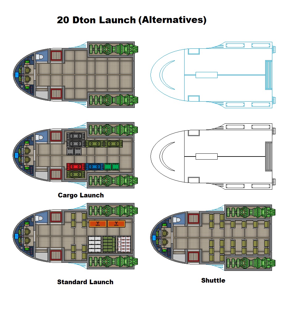 I wanted a different launch for my 2000 Dton Jump Freighter I am working on. The shuttle bay just didn’t fit the standard ‘Traveller’ launch designs – so the deck plan elves got busy. After I finished these I was watching an episode of Firefly and thought that I should do a ‘Courtesan’s Launch’ . That is next in the construction array.