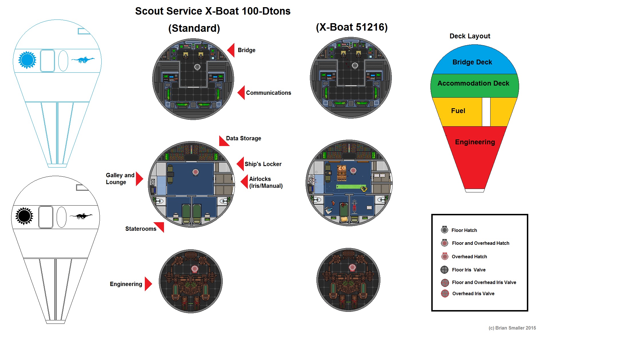 The Express Boat is a small teardrop shaped 100-Dton jump ship. It has performance of Jump4 but carries no maneuver drives other than attitude thrusters – it is reliant on X-Boat Tenders for refueling, resupply and crew change over. The crew is normally one, although there are two staterooms. The ship has extensive computers and storage banks for vast amounts of data. The boats sit on station in a system and when another X-Boat jumps in-system, it transmits it’s stored data to the waiting ship that then jumps to it’s next destination. X-Boat pilots log a lot of Jumps, but spend a lot of time alone. In Jump Space – with nobody to talk to.