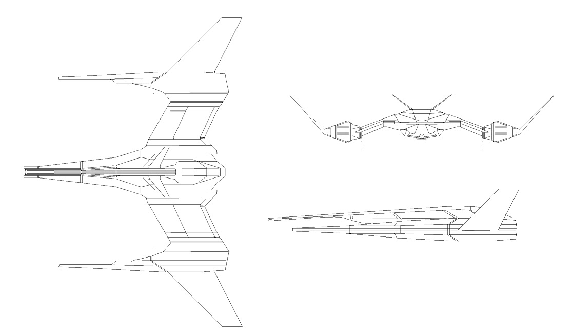 One of the newest fighters deployed by the Zhodanii fleet, client states, and Allied forces. Type 125 Sh’zahg ( “Frightful Shape”, Imperium Code Name Zack) is a swift, agile and lethal fighter. Reserved for more experienced pilots, the Sh’zahg is named after a lethal ray like aquatic predator revered by the minor race native to the designer’s homeworld. The Sh’zahg made it’s debut during a border dispute between a large mining concern and a Zhodani corporation. When the Mining Concerns mercenary security forces fired on a transport severely damaging it. A single Zhodani Carrier and it’s escorts were dispatch.The flights of fighters launched by the Squadron disabled and nearly destroyed the four Mercenary cruisers in the area, and flattened the ground installation being contested by the two companies. Even with fighter support the four Broadswords were unable to deal with he massed missile and laser fire put out by several squadrons of fighters. In the end the mercenary cruisers were able to destroy several fighters, but they inflicted no harm what so ever on the carrier or its escorts as they hovered well outside of weapons range.