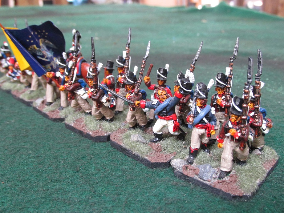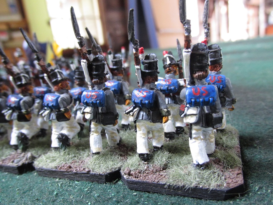 From my ‘What I discovered in a box’ archive. Two regiments of American regulars. One in the familiar grey and one in brown. These are Old Glory figures. The usual mix of really good poses and a few of the traditional Old Glory “animated” figures.