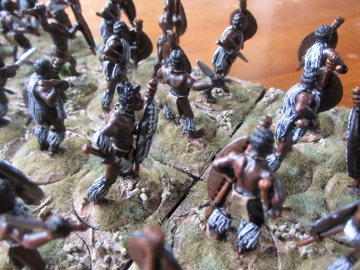 Today I am posting another Unmarried Zulu Regiment. This is uMbonambi “The Evil Omen”. It was re-constituted in 1863. It was originally formed in 1821 during the reign of Shaka. At the time of Isandlwana the majority of it’s men would have been in their mid thirties (35-37). The regiment was present at many other battles in the Anglo-Zulu War and by the time of Ulundi may well have been reinforced with younger replacements but I seriously doubt that would have effected their fighting ability.