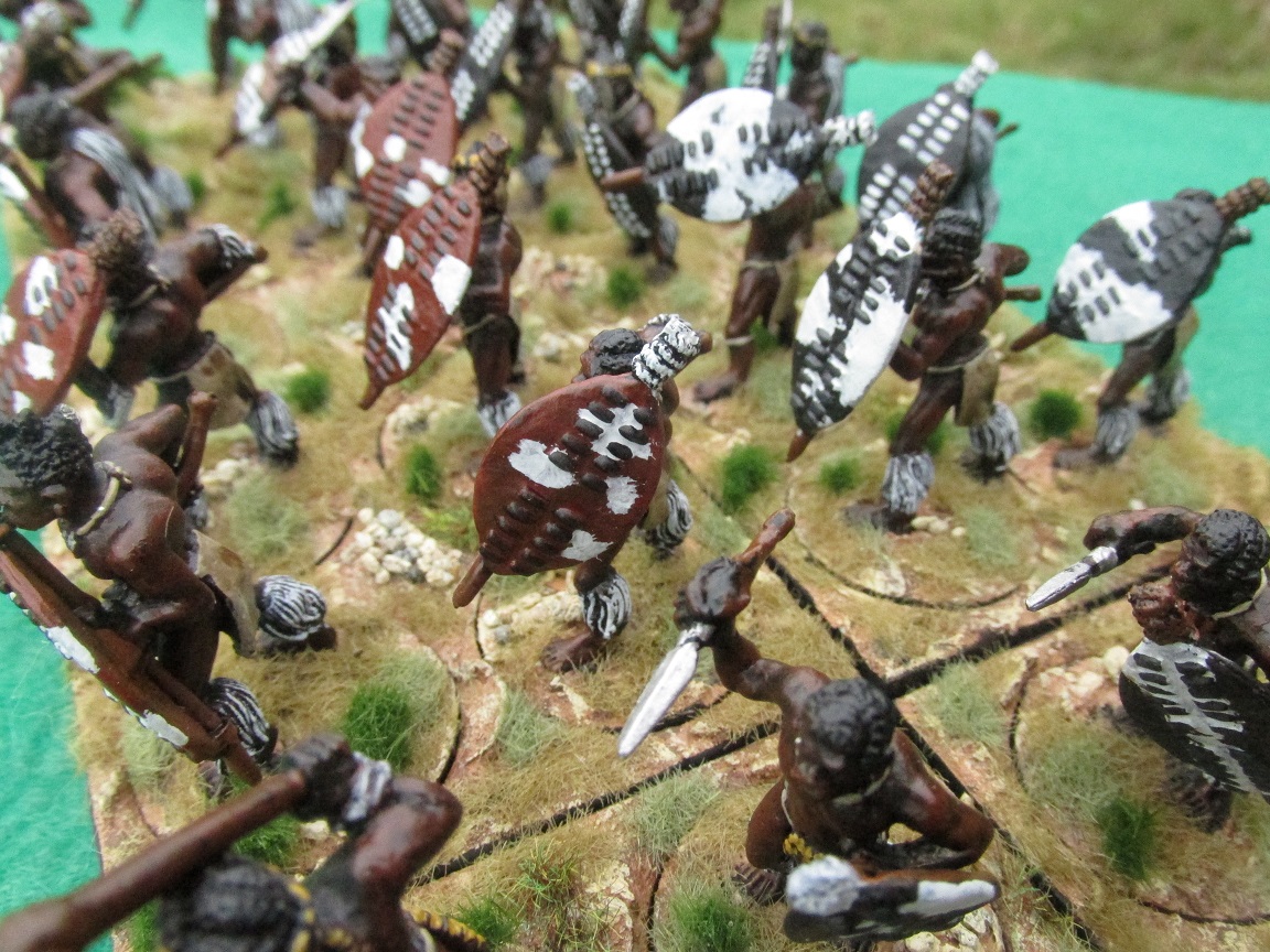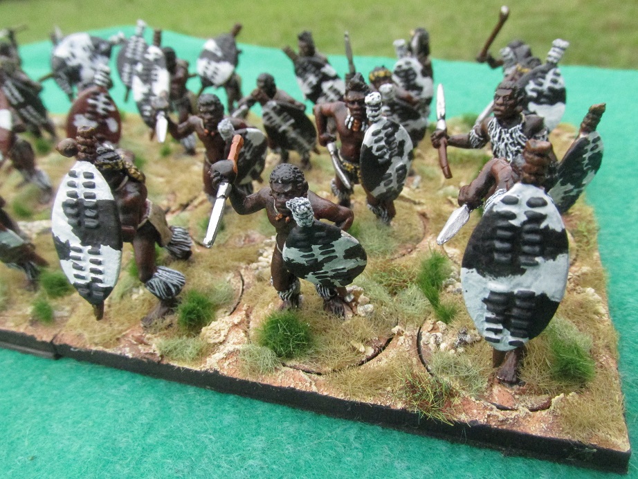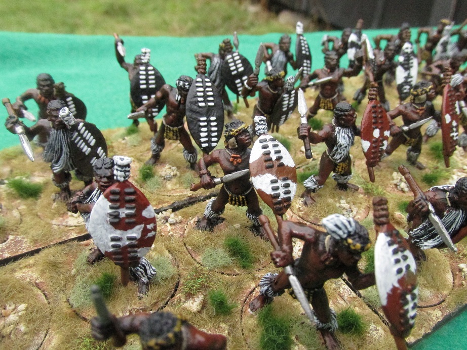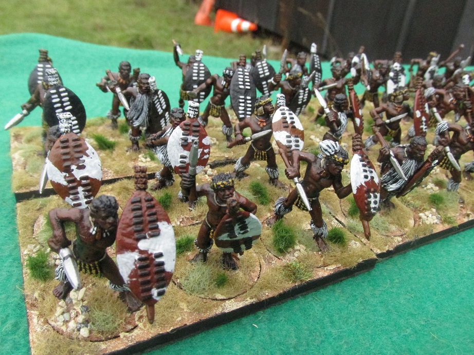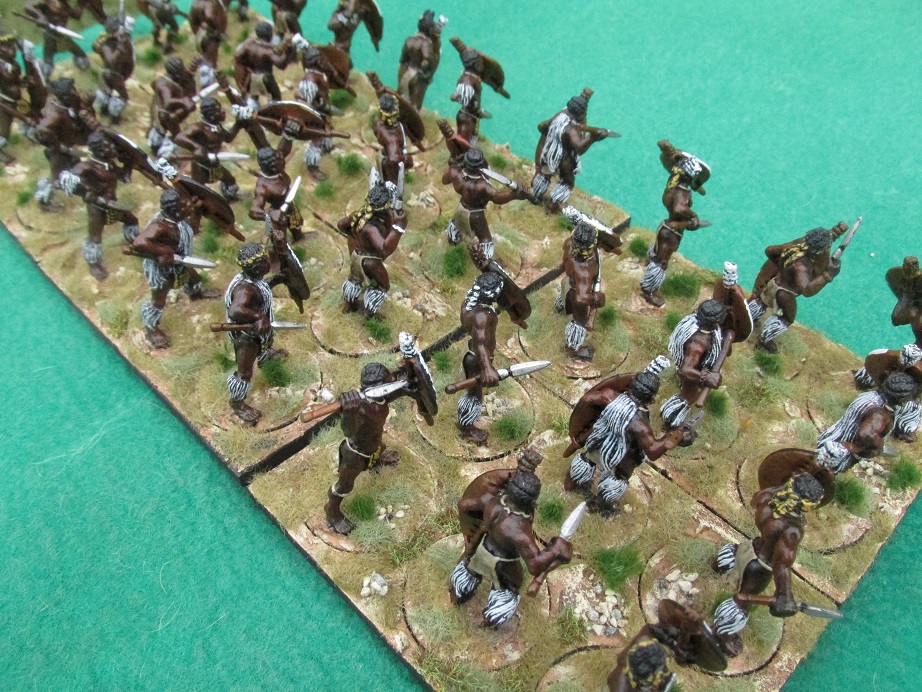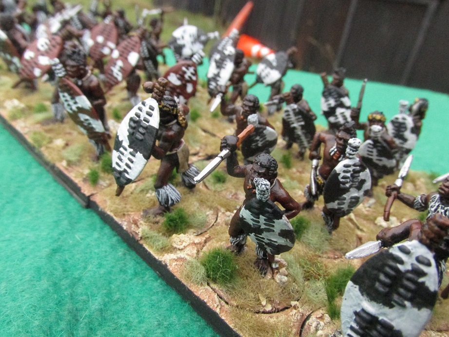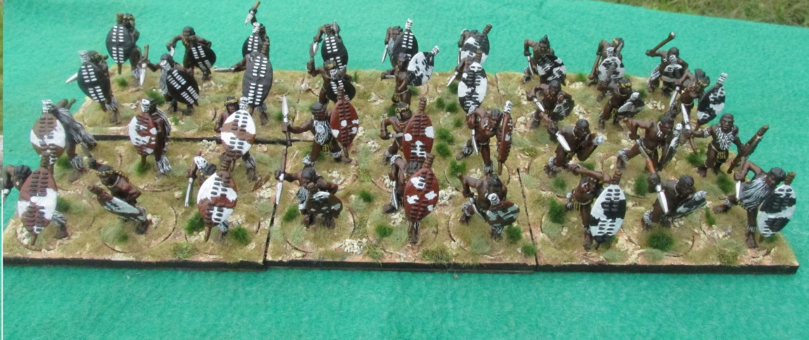 Over Easter I had friends coming up to stay at the Woolshed and I wanted to host a Zulu War game. I had already painted two more Zulu regiments this month and wanted to knock off a third. This regiment of thirty-six figures took me two days. I had got them assembled and undercoated black on the weekend before Easter. Started them on Tuesday and finished them Wednesday evening – based and ready to go.