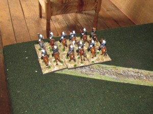 Meanwhile the Volunteer Cavalry blunder a command roll and retreat to their own table edge.