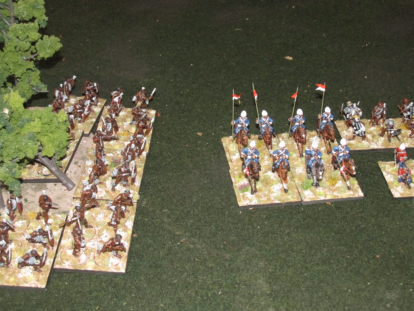 USuthu! A hidden unit of Zulu springs to their feet – the induna blunders his command roll, then gets a random “Charge” result – Just what he wanted! Sometimes the dice-gods are benevolent deities.
