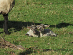 Well, yesterday morning she was out getting some wood and happen to glance over to one of the front paddocks. There she saw something little and with a wagging tail. Yes, you guested it, new lambs. Boy she was surprised!!