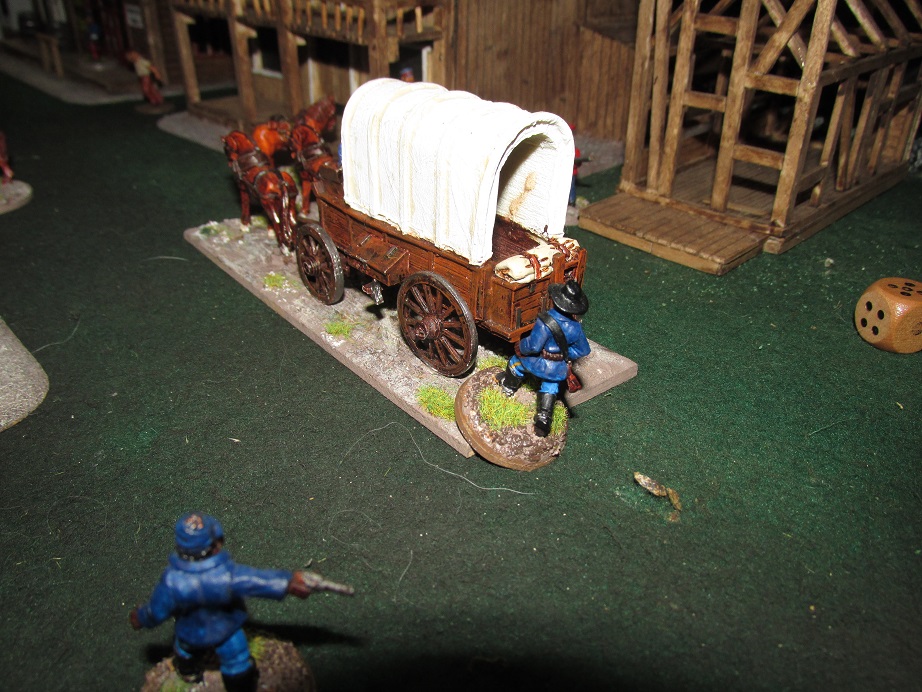 Buffalo Soldiers trying to stop their run-away wagon containing their gatling gun.