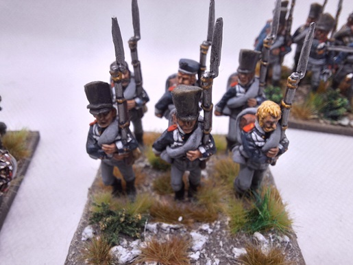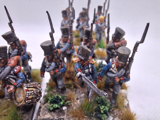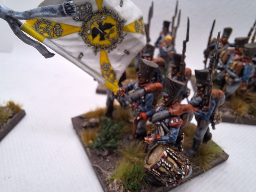 This is a unit painted by my friend David. A mix of Perry plastic, Foundry, Old Glory and I think Calpe. Might be wrong about the mix but it is eclectic. There are three battalions painted for this army so far. David has based these with a mounted Colonel, and a lot of NCO figures – pretty much one per base.